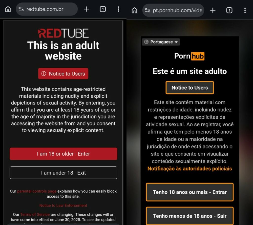 ECA Digital: estão em vigor as novas regras para menores em redes sociais, jogos e sites Alguns sites pornográficos como RedTube e Pornhub seguem aceitando